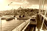 Halic metro bridge and view on the Suleymaniye Mosque, Istanbul