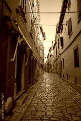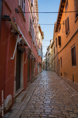 Rovinj. Croatia. A narrow deserted street, covered with white limestone.