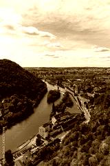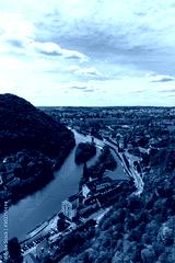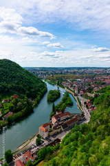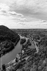 Landscape from Citadel of Besancon and River Doubs in Bourgogne Franche-Comte region, France. French Castle and medieval stone fortress in Burgundy. Fortress architecture and scenery. View from tower