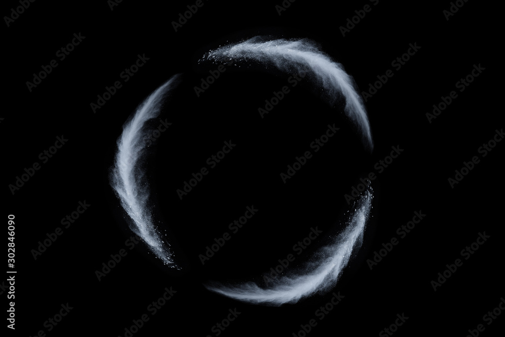 White powder explosion on black background. Colored cloud. Colorful dust explode. Paint Holi.