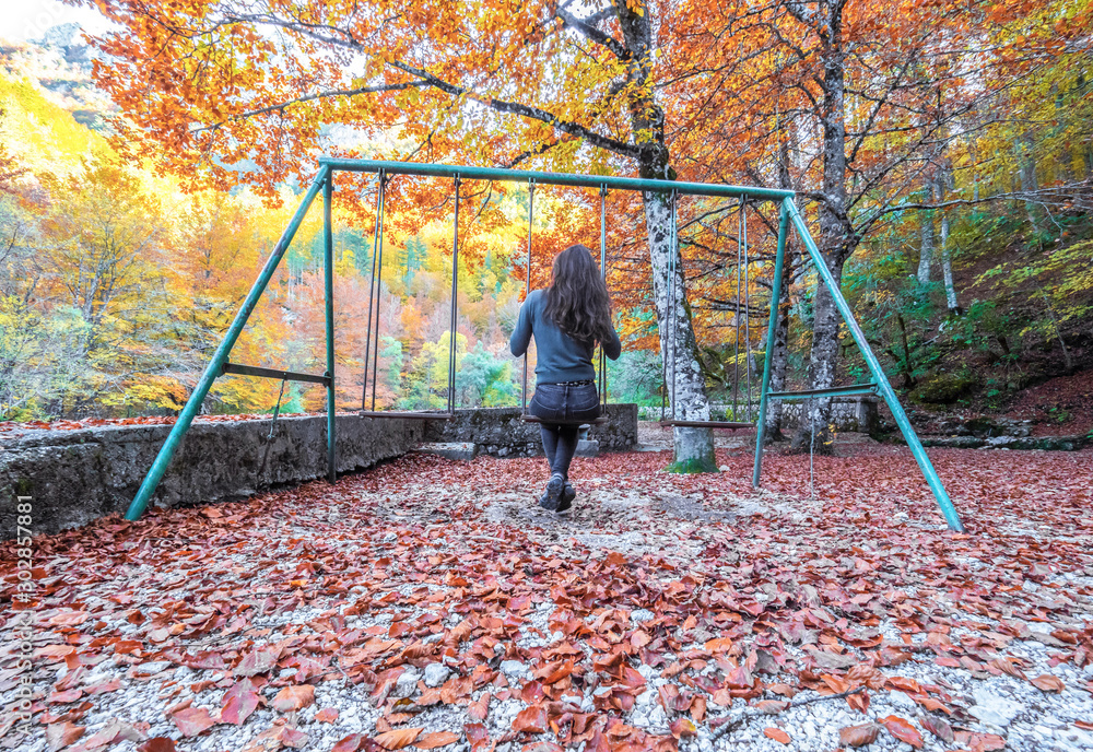 National Park of Abruzzo, Lazio and Molise (Italy) - The autumn with foliage in the italian mountain natural reserve, with little towns, wild animals like deer, Barrea Lake, Camosciara, Forca d'Acero
