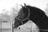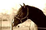 Young stallion looking over the corral fence