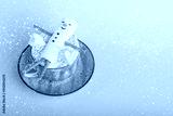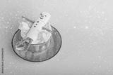 a mug with cocoa in which lies a happy marshmallow man. The concept of a warm Christmas and winter holidays warming drink