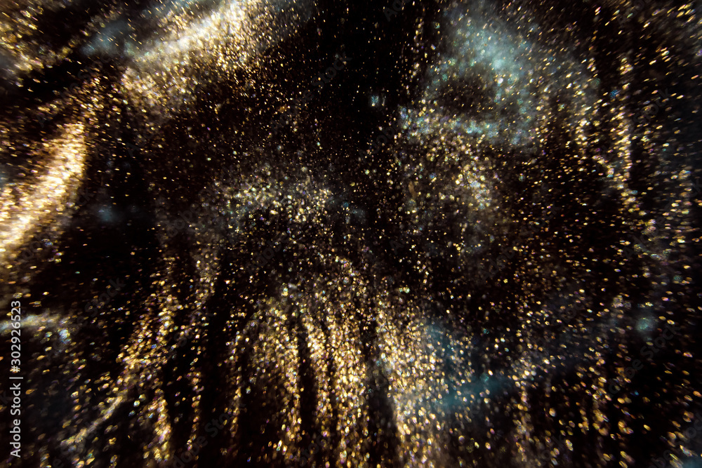 Abstract black and gold festive glitter shimmering water luxury background. de-focused