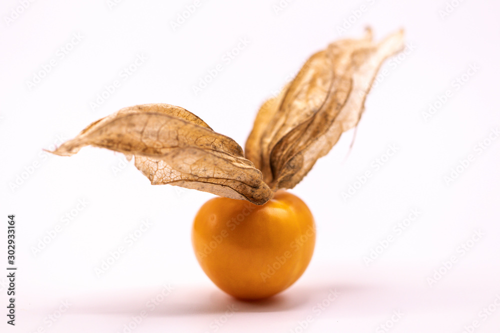 Selective focus close up cape gooseberry fruits (Physalis peruviana)isolated on white background.Commonly called goldenberry, golden berry, Pichuberry.