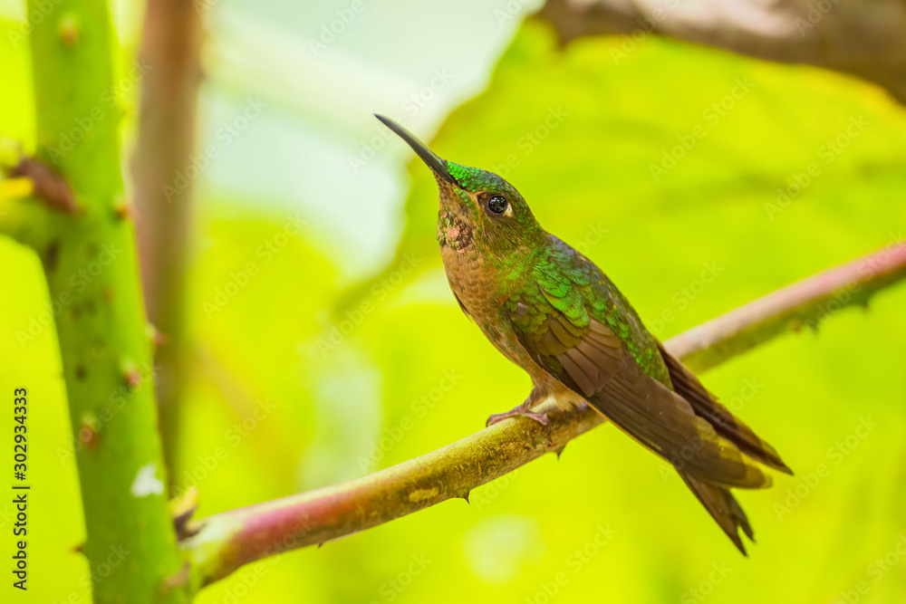 Fawn-breasted Brilliant - Heliodoxa rubinoides, beautiful green and brown hummingbird from Eastern Andean slopes of South America, Ecuador.