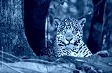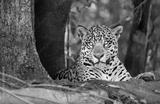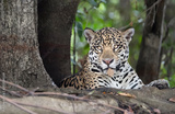 Close up of a Jaguar lying on a tree