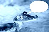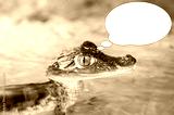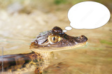Soft focus funny picture young crocodile, alligator with bubble idea.