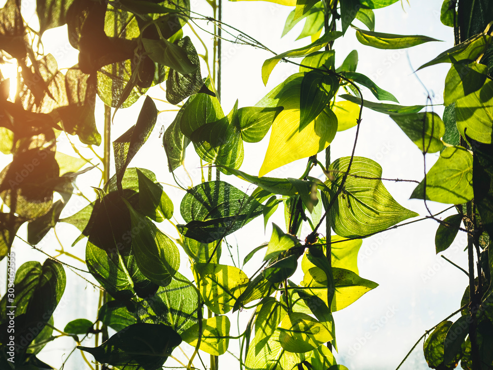 Leaves and vine with sunlight Garden park outdoor Nature backgorund
