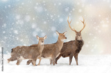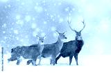 Deer in a snow on Christmas background