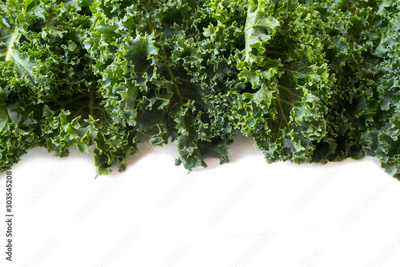 Top view. Kale leaves on a white background. Background of kale leaves. Fresh kale leaves background. Texture kale close up.