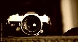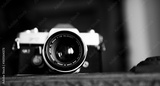 portrait of an vintage film camera from the 1960s in black and white