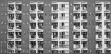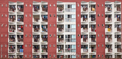 Residential apartment building with drying laundry on balconies, Chengdu, China.