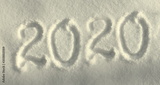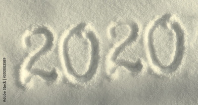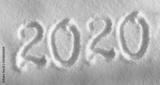 Abstract Christmas photo for beautiful Christmas card with background inscription 2020 on real white snow in winter in cold weather