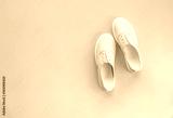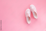 One pair of pink casual shoe for woman on isolated pink background for poster, advertising or any issue about fashion.