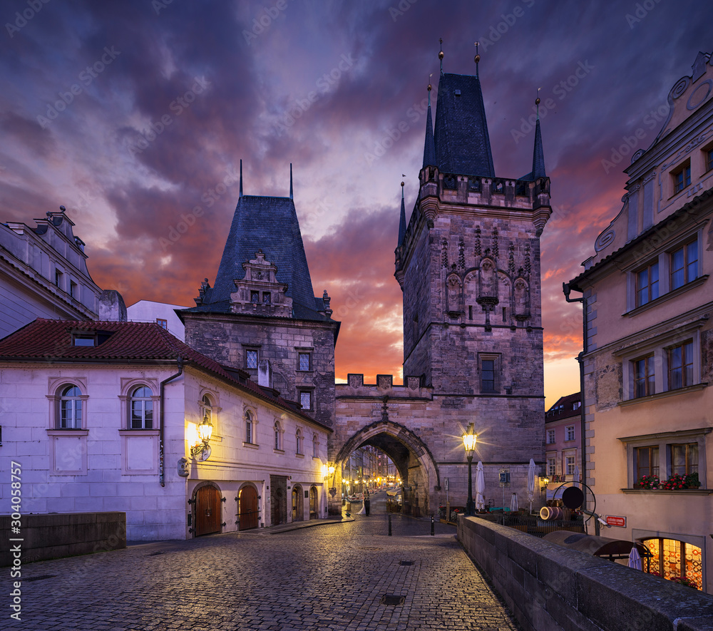 Mala Strana Bridge Tower. Charles Bridge in Prague, Czech Republic.