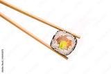 Sushi with chopsticks isolated on a white background