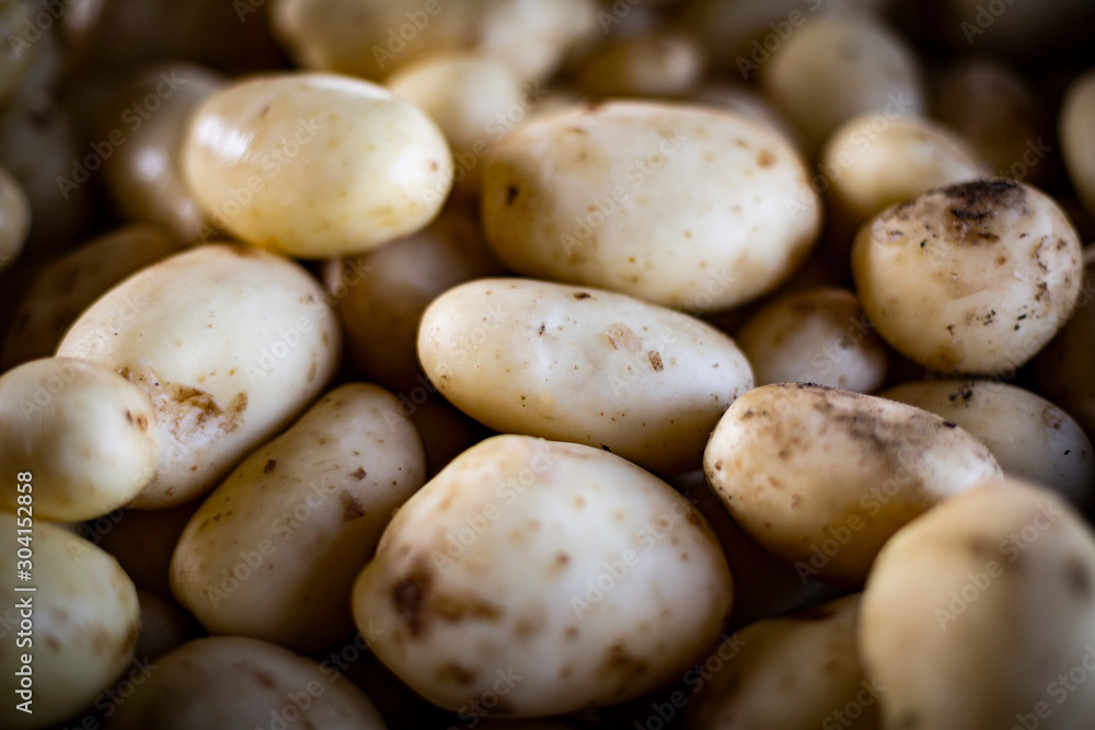 Potatoes. Freshly harvested and washed vegetables. Harvest time.