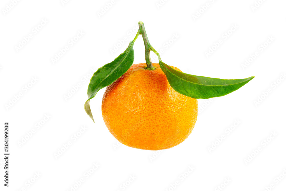 one fresh tangerine mandarin orange fruit isolated on white