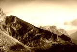 Dramatic Sunrise Above Clouds Level at High Mountains Peaks, Mangart, Slovenia.