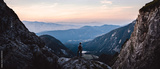 Breathtaking Views From Mangart Peak at Stunning Sunset. Peaks Above Clouds.