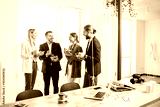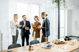 Group of a young office workers during a lunch time in the office. Concept of a healthy takeaway food on the work
