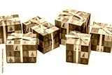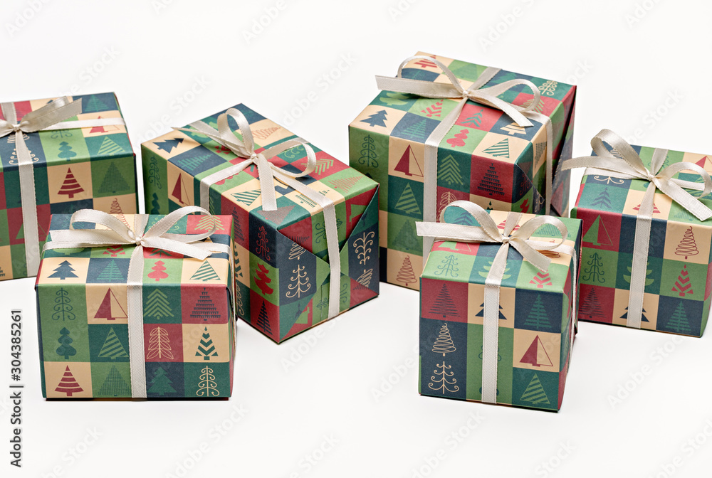 Gifts for Christmas and New Year in a beautifully packed box. Winter holiday, studio shot.