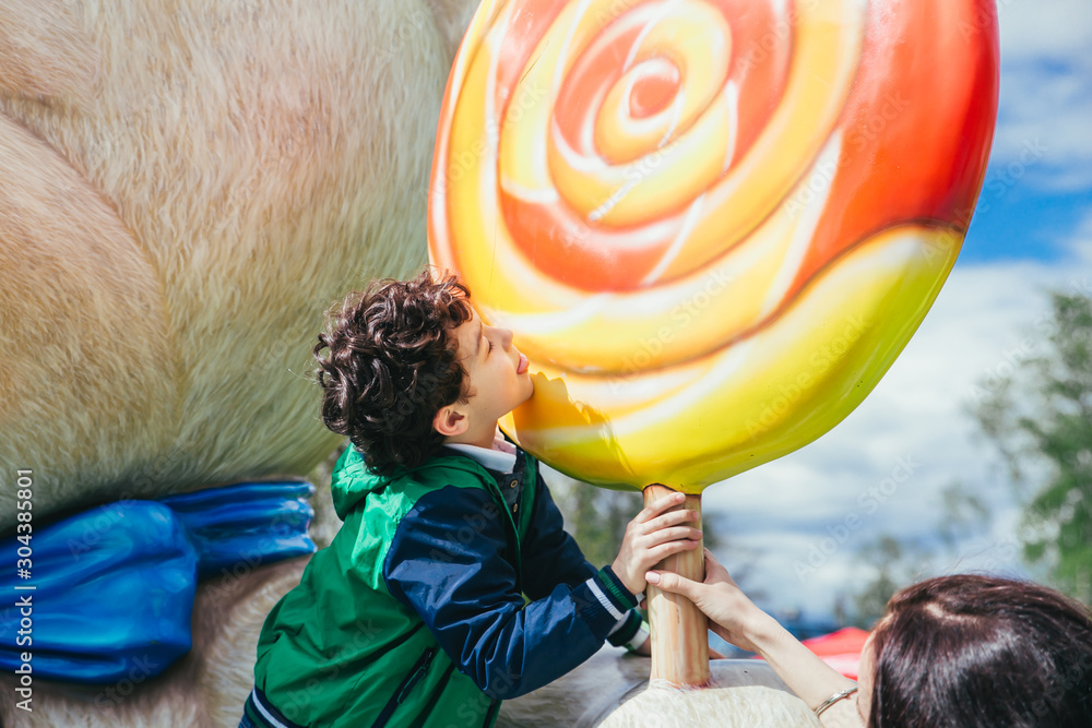 Little boy having fun in the amusement park.