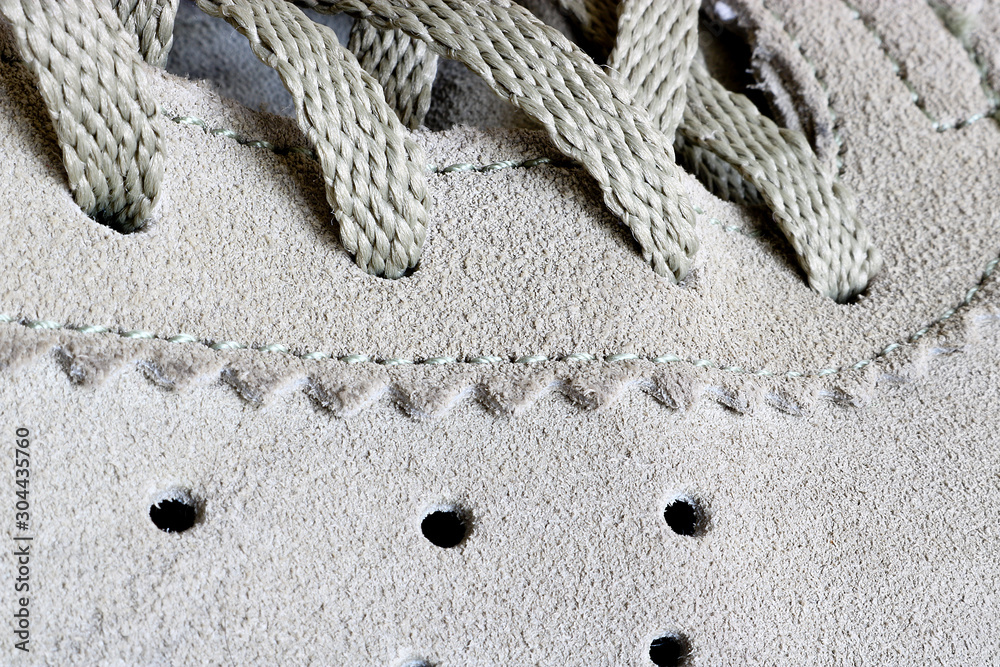 Sports shoes made of genuine suede. Close up. The concept of an active healthy lifestyle.