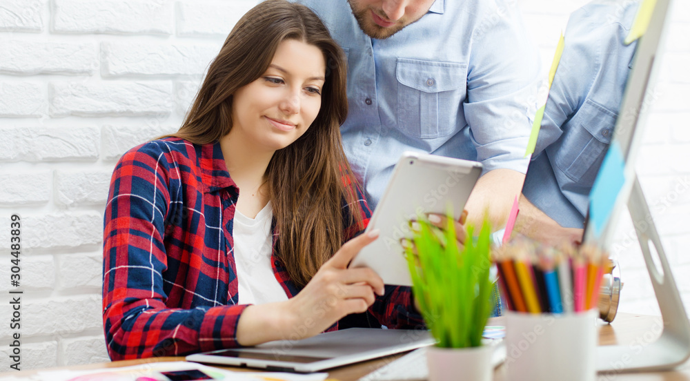 Team of creative designers working on a common project in a design studio