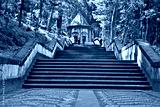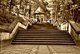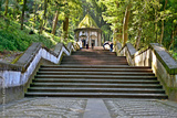 Stairs and Chapel in the forest on the way to the Church "Bom Jesus do Monte" in Braga, Portugal