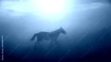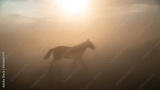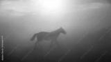 Single horse running and kicking up dust. Yilki horses in Kayseri Turkey are wild horses with no owners