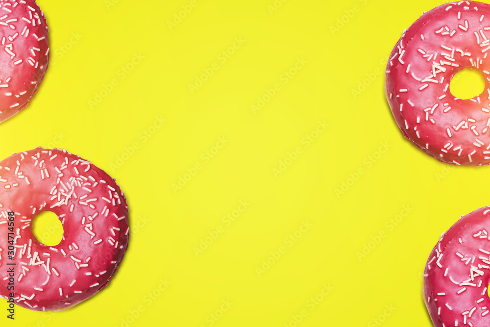Fresh Donuts on Yellow Background Close