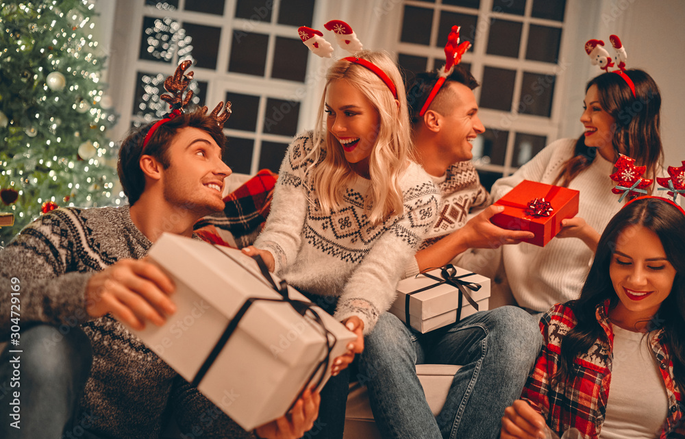 Group of friends celebrating Christmas at home