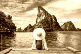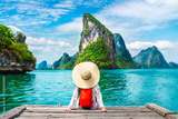 Traveler woman looking amazed nature scenic landscape tropical island Phang-Nga bay Adventure lifestyle tourist travel Phuket Thailand summer holiday vacation Tourism beautiful destination place Asia