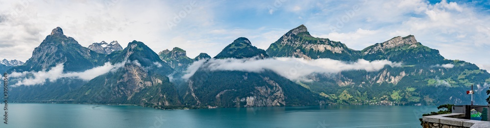 Switzerland, Panoramic view on green Alps near Isleten