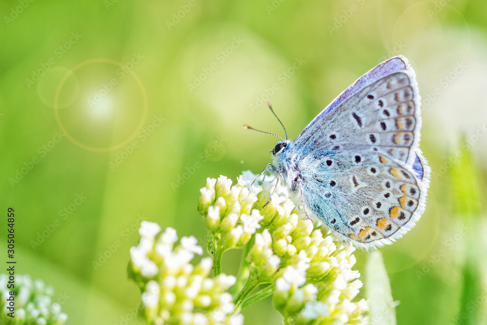 Blue butterfly on a white flower