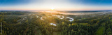 Sunrise in the bog landscape. Misty marsh, lakes nature environment background