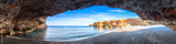Beach of Spilies or Kitrenosi with sea caves near Rethimno, Crete, Greece.