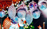 Christmas Tree Decoration on Christmas Market at Gendarmenmarkt in Winter Berlin, Germany. Advent Fair Decoration, and Stalls with Crafts Items in Bazaar. Made of glass
