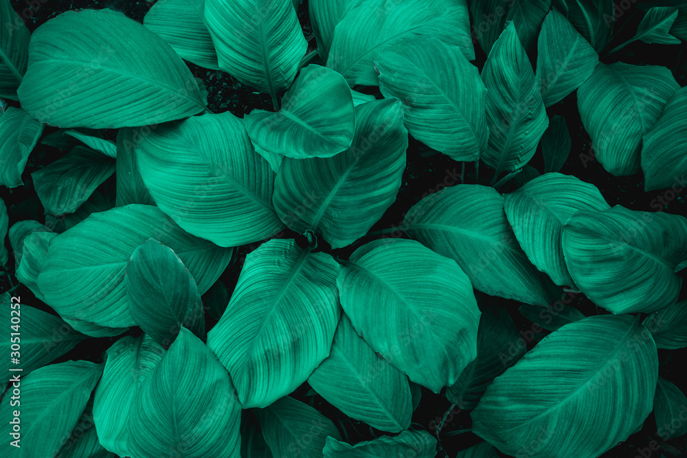 leaves of Spathiphyllum cannifolium, abstract green texture, nature background, tropical leaf