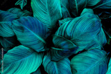 leaves of Spathiphyllum cannifolium, abstract green texture, nature background, tropical leaf