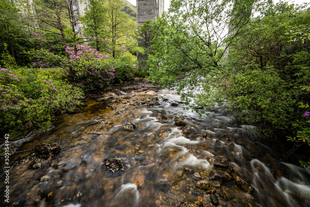 Picturesque landscape of a mountain river with traditional nature of Scotland.