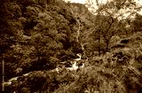 Picturesque landscape of a mountain waterfall and traditional nature of Scotland.