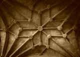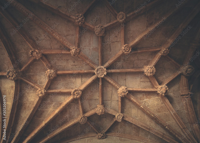 The exterior of Hieronymites Monastery.View of beautiful reticulated vaulting and columns Manueline architecture style. Famous Lisbon landmark in Belem district and Unesco Heritage.Vintage effect.