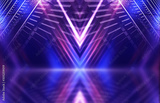 Empty dark abstract background. Background of an empty show scene. Glow of neon lights on an empty stage.