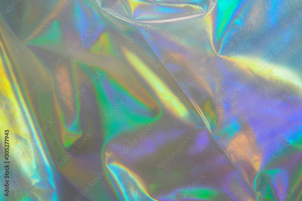 Iridescent fabric background. Shiny mother of pearl fabric, bright multi-colored fabric