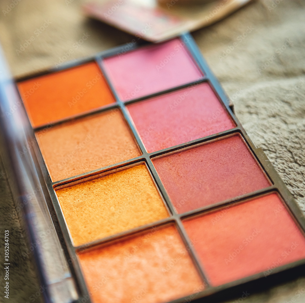Palette of multi-colored shadows of cosmetics