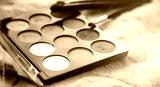 Palette of multi-colored shadows of cosmetics