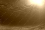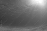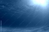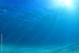 Underwater photo of blue ocean, sunbeams and sandy sea floor